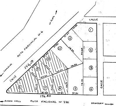 FRACCION 10.000 M2 Con frente por Ruta Nº 6 146,50 y sobre Ruta Nº 210 (Av. Yrigoyen) 146 metros.-