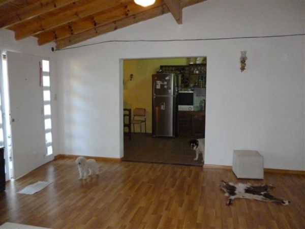Chalet : 3 dormitorios c/ pisos de ceramica ( 1 c/ placard ) living- comedor c/ pisos de madera flotante, cocina - comedor diario amoblada, baño principal, lavadero cubierto, garage pasante para 3 autos o quincho c/ baño auxiliar . muy buen estado - a 150 mts metros asfalto