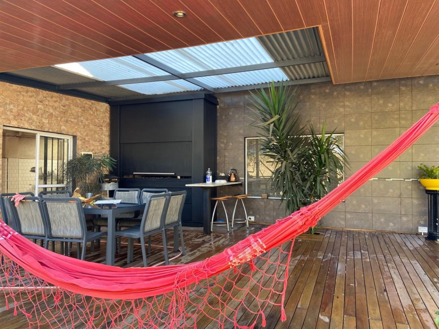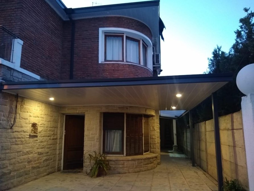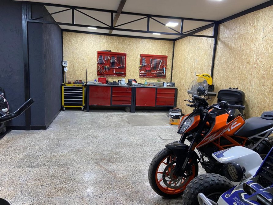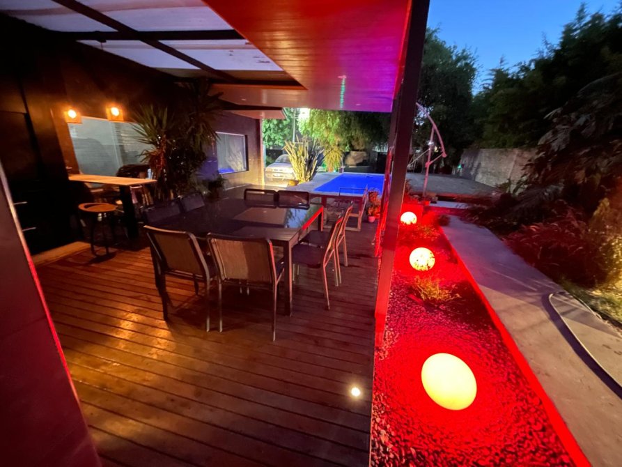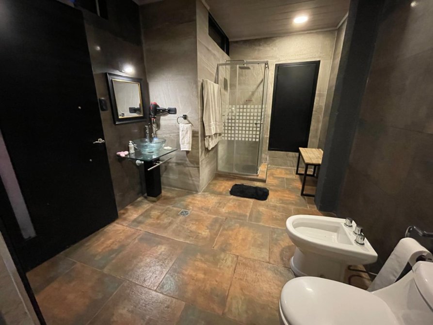P.B : liv-com amplio c/ hogar a leña, coc-com diario, toillete, jardin de invierno, habitacion de servicio. Gge p/ 2 autos, galeria y parque. Al fdo galpon de 200 m2 c/techo de losa, baños y portones.