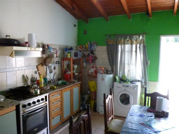 Casa: 3 dormitorios c/ pisos de ceramica, living-comedor, cocina-comedor diaria amueblada, baño completo, cochera, patio, galpon, techo de chapa c7 cieloraso, madera a la vista asfalto a 50 mts, Quincho al fondo c/ Baño - 40 M2