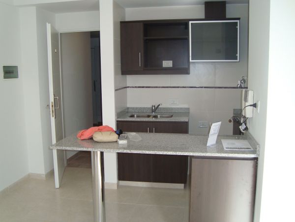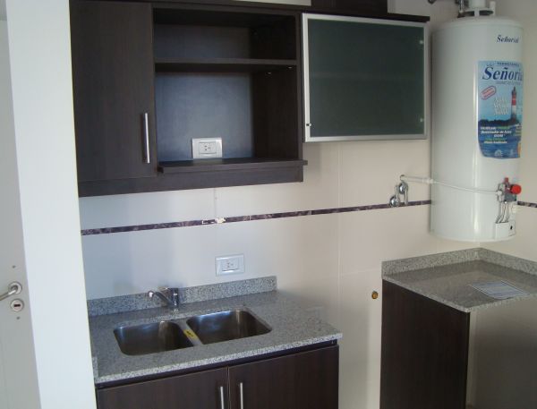 Monoambiente: de 27 m cubiertos, sector de cocina c/ muebles bajo y sobre mesada, doble bacha c/ canilla monocomando, termotanque,artefacto de cocina colocado, barra desayunadora, baño completo c/ bañera, placard, balcon y terraza para uso comun.