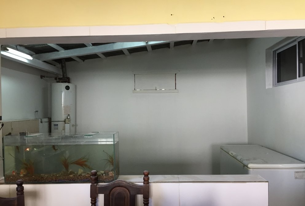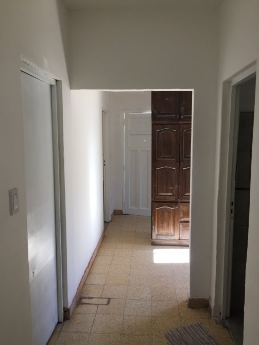 CASA 3 dorm c/ pisos mosaicos (1 c/ placard) living, coc-com diario c/ bajo mesada, baño c/ agua caliente, lavadero cubierto, entrada de auto, patio, galpón, fondo libre, techo de losa y chapa. NO TIENE PLANOS.