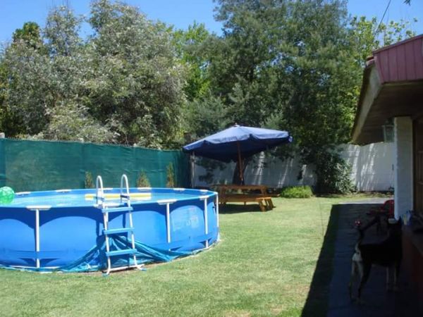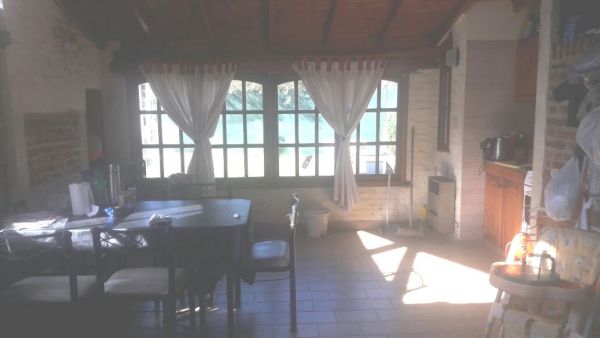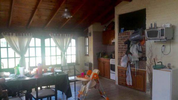 Casa: 3 dorm c/ pisos de ceramica y placard, living comedor c/ entrepiso, cocina comedor diario, baño amplio nuevo, toillete, entrada de auto al frente y buen parque. Bomba sumergible a 50 mts encamisada