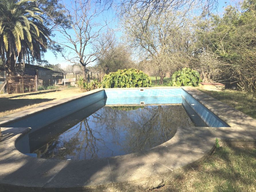 Casa de caseros: 2 dormitorios, cocina y baño ( estado Regular), pileta de material de 4 x 8 mts, galpon, corrales de chanchos y campo para cultivo. a 600 mts de Av eva Peron.acepta depto en parte de pago -