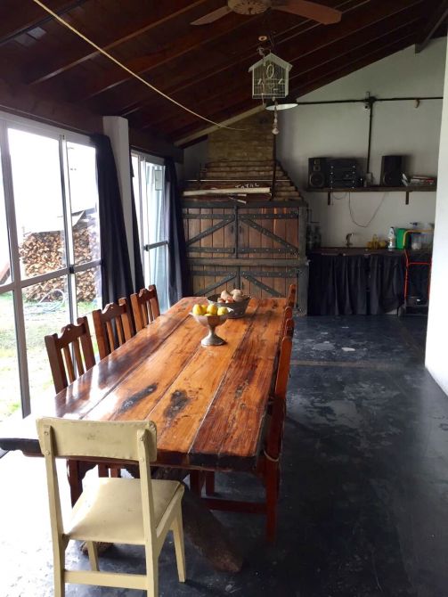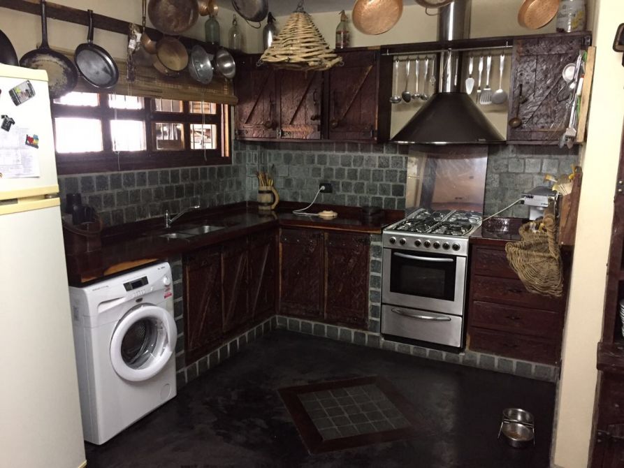P.Baja. Living Comedor Con Hogar a gas, cocina-comedor diario amueblado con mueble de quebracho, Baño Completo, cochera para 3 autos, Galería Amplia cerrada con ventanales de aluminio y parilla, Parque con pileta de material de 4 Mts x 8 Mts. Frente Revestido con Quebracho. Techo Nuevo En su totalidad.