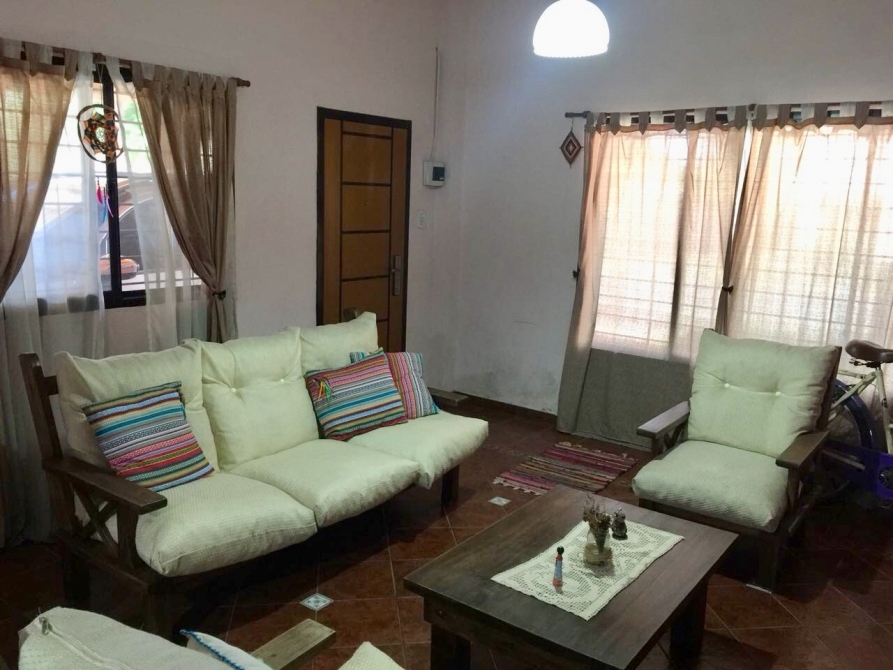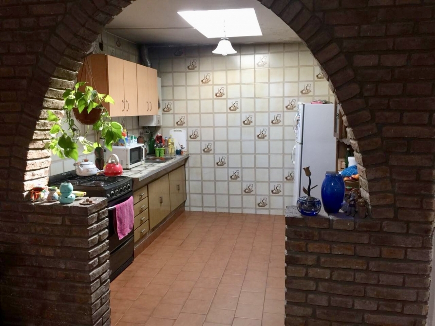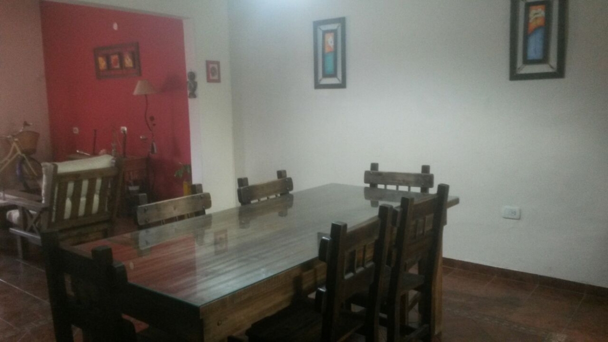 2 dormitorios (1 amplio), living-comedor amplio, comedor diario, cocina amueblada, baño completo, galpon y/o 3º dormitorio, cochera al frente para 2 autos, patio y buen parque. -MUY BUEN ESTADO-
