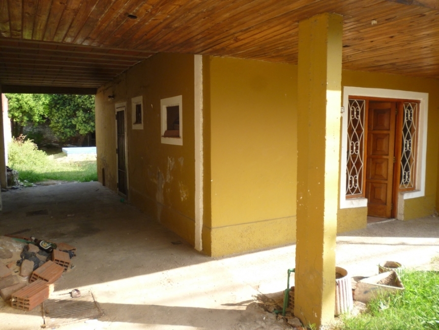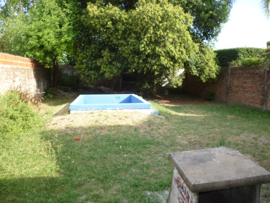 Casa con 2 dormitorios con pisos de ceramicos, living-comedor, cocina-comedor diario, baño, lavadero, cochera techada pasante, patio y fondo con pileta de material de 2x5mts y pequeño galpon. Techo de losa con membrana.