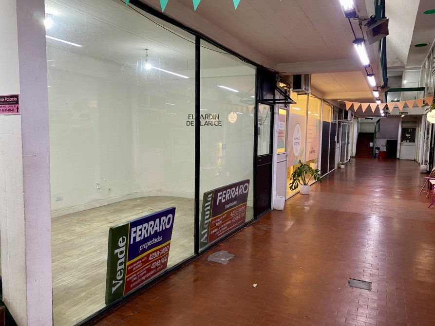 Local 4 x 3 mts c/frente vidriado, pisos cerámica, frente vidriado, cartel sobre calle Spiro de 1,10 x 0,70 y baño en galería.