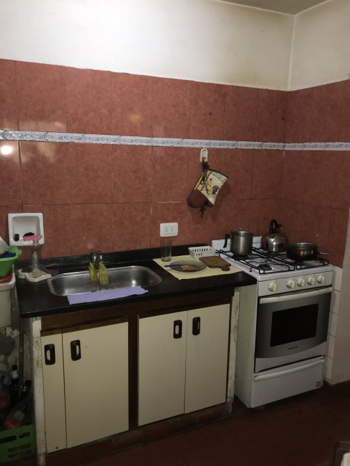 PB: living, cocina - comedor diario amoblado, baño, patio y buen parque c/parrilla.