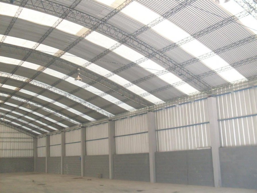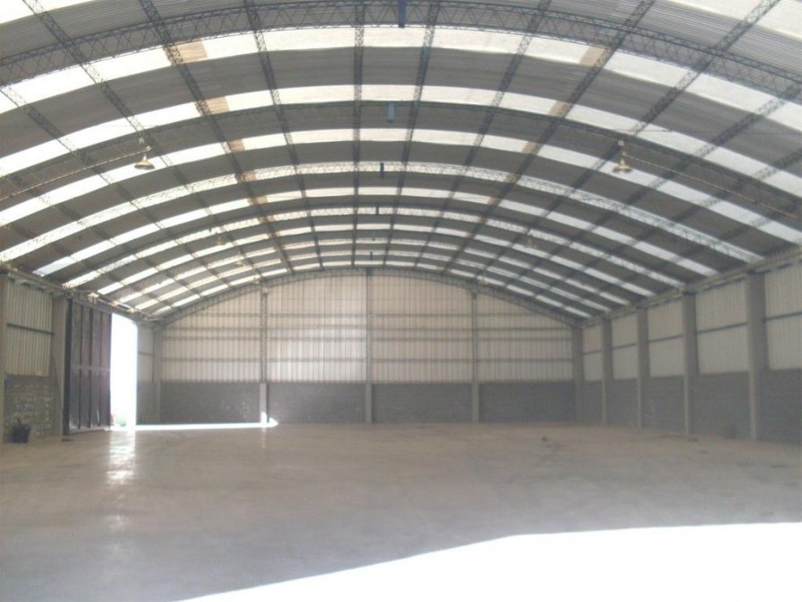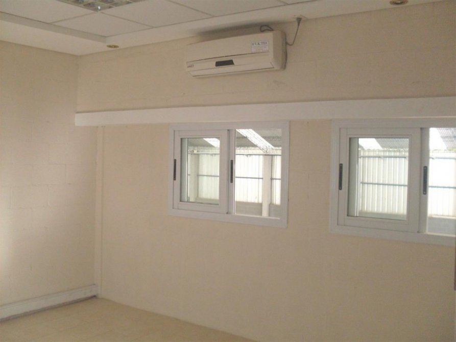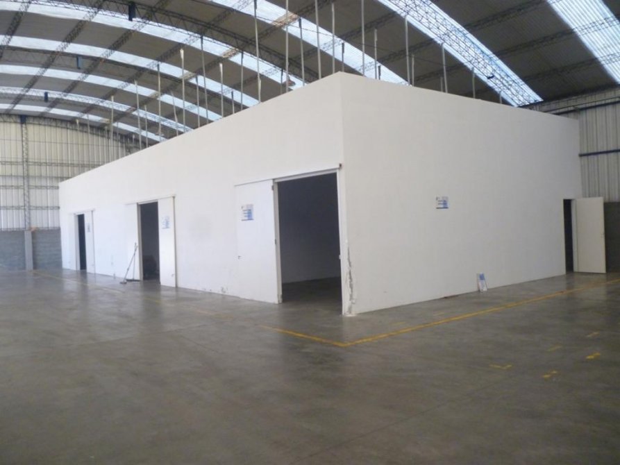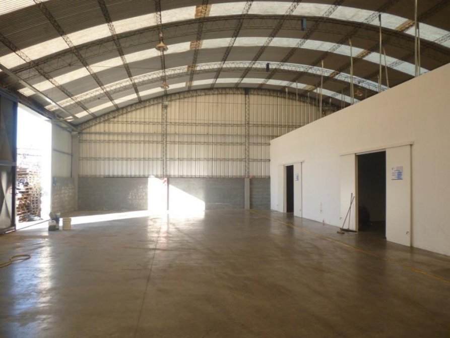 <Galpon de 800 m2 c/techo parabólico de 7 mts de altura, contrapiso de 25 cm de espesor, 2 portones de entrada de camiones, 300 m2 de oficina en 2 plantas c/baños, vestuario y kitchenette, recepción y oficinas. Playa de maniobras 300m2.