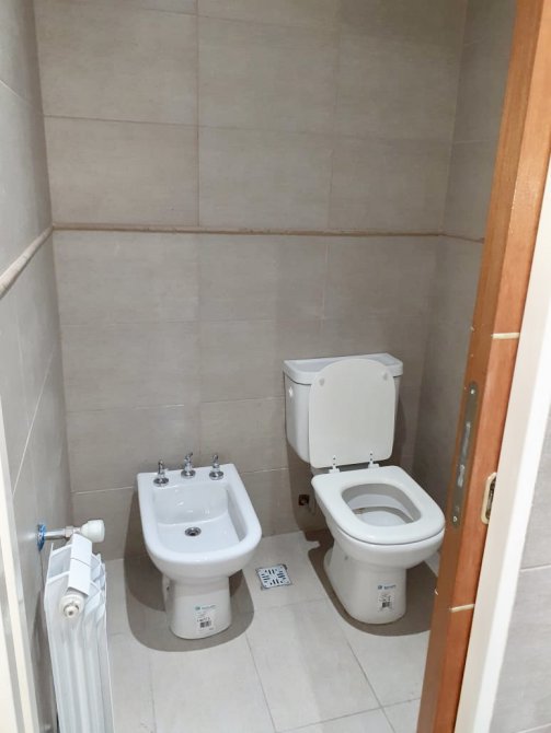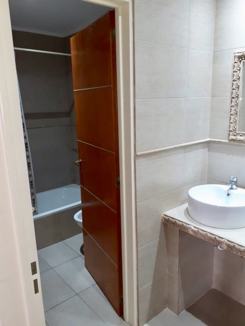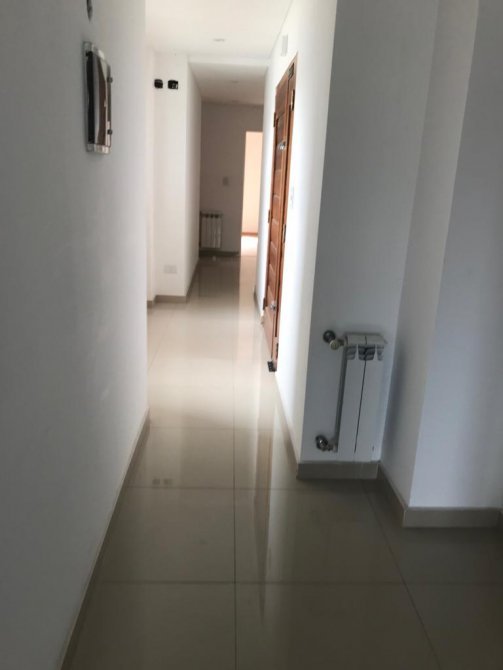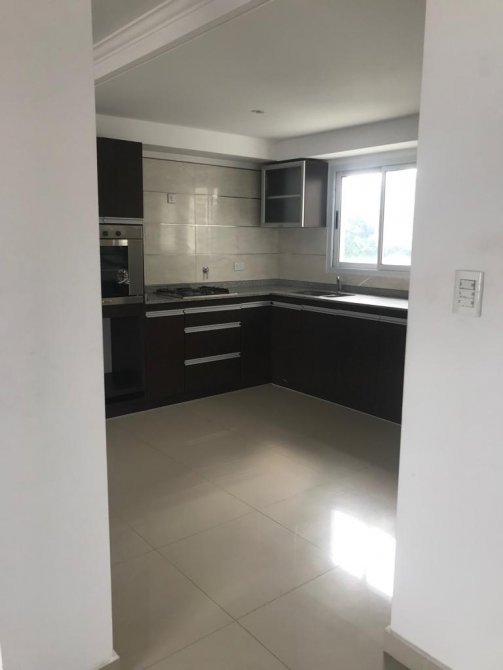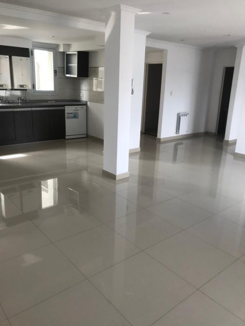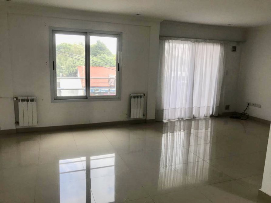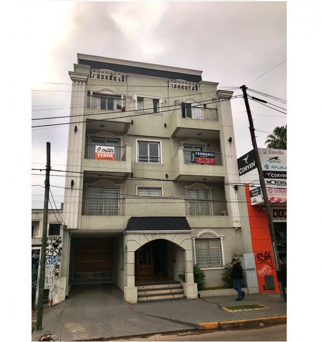 Departamento 2do piso: 3 dormitorios con placard y piso flotante, living-comedor amplio con balcon y pisos de porcelanato, cocina-comer amoblada con balcón y lava vajillas, baño, toilette, lavadero y cochera. Calefacción por Radiación. Pileta y Som.