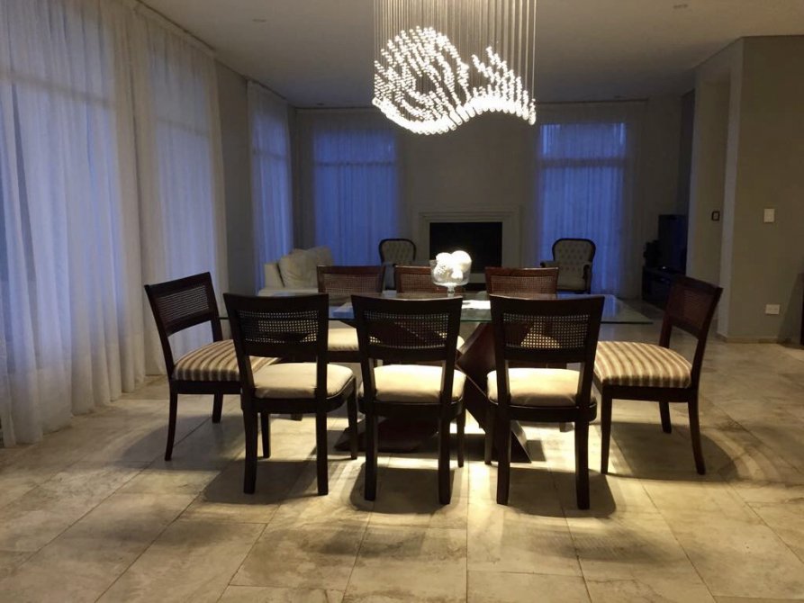 PB: 1 escritorio, living - comedor amplio c/hogar a leña, pisos de marmol, baño completo con ducha, cocina - comedor diario amoblado (muebles con herrajes blum y mesada de silestone blanco) super amplio con anafe electrico, horno electrico, toilette, lavadero cubierto amplio, sala de maquinas y espacio de guardado, galeria c/vista al parque y pileta de 9 x 4.50 + jacuzzi con venecitas y sistema de filtrado automatico con cerco perimetral y solarium c/piso atermico, quincho con baño completo y parrilla con sus respectivos herrajes.