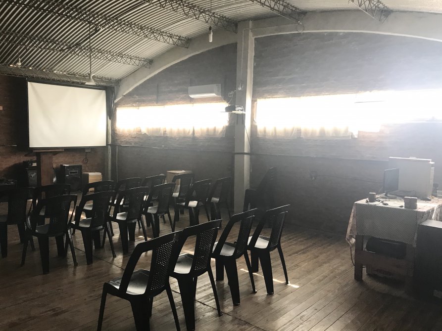Galpon de 8 x 11 mts c/techo parabolico de 7 mts de altura, contrapiso, 1 baño, 1 cortina metalica de 3 mts de ingreso, entrepiso amplio c/pisos de madera, playa al frente.