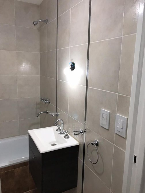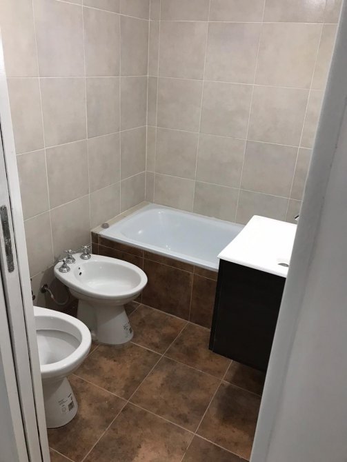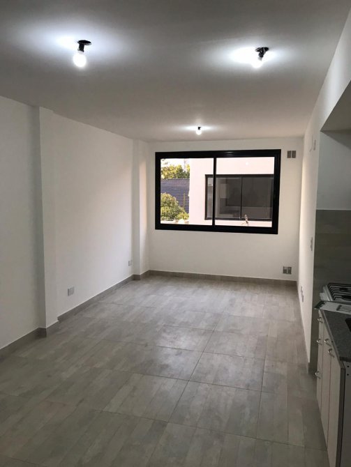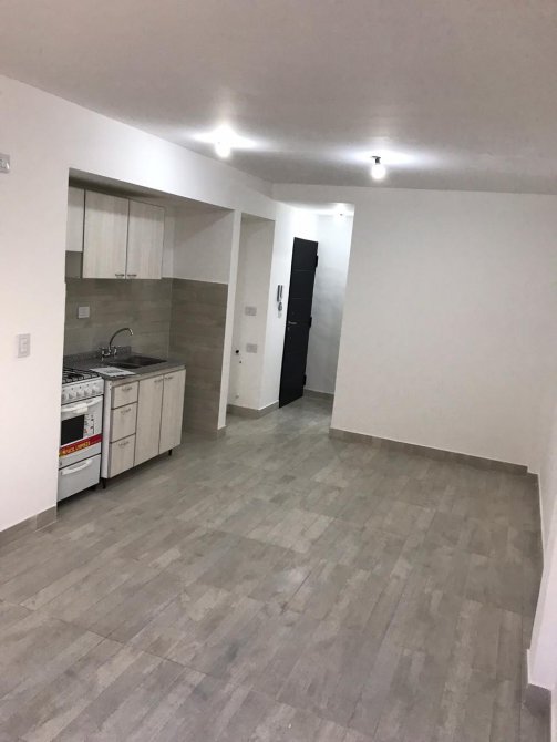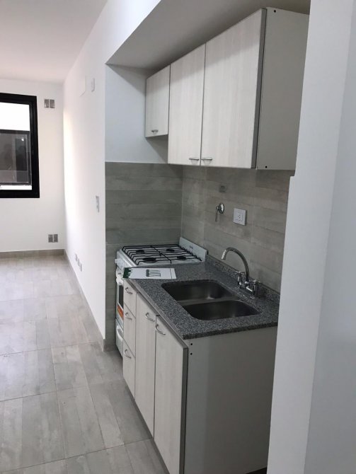 Ambiente único, comedor-cocina, piso porcelanato, baño, piso y pared de cerámica, piedra premoldeada mesada de mármol gris mara con pileta de acero inoxidable, dormitorio, lavadero.