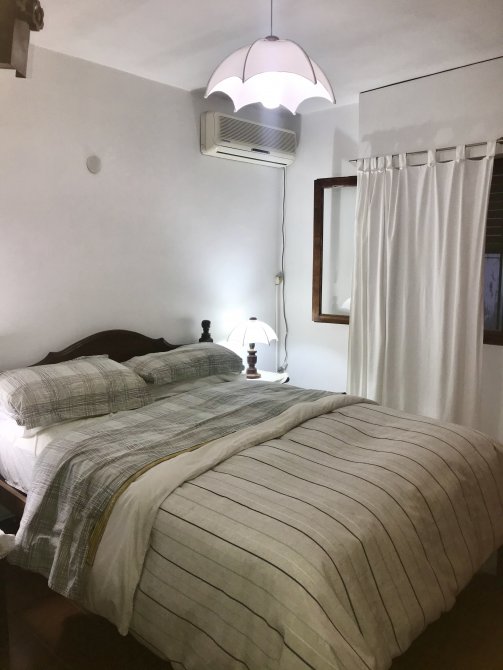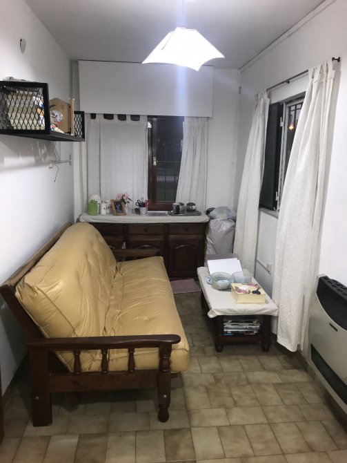 Casa con 1 dormitorio c/pisos ceramicos, living o 2ndo dormitorio, cocina - comedor diario amoblado, baño completo, lavadero cubierto c/parrilla, garaje, patio, y buen jardin al fte c/bomba sumergible.