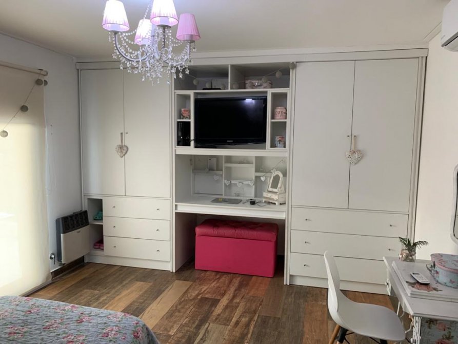 Casa de dos plantas en venta. Planta Alta: tres dormitorios amplios c/ placard (Principal en suite c/ vestidor), 2 c/ Balcón, Baño completo y amplio playroom. Planta Baja: Escritorio, Living-Comedor amplio, Cocina-Comedor Diario Amueblado c/ Isla, Baño completo, Lavadero Cubierto, Galería c/ Parrilla.-