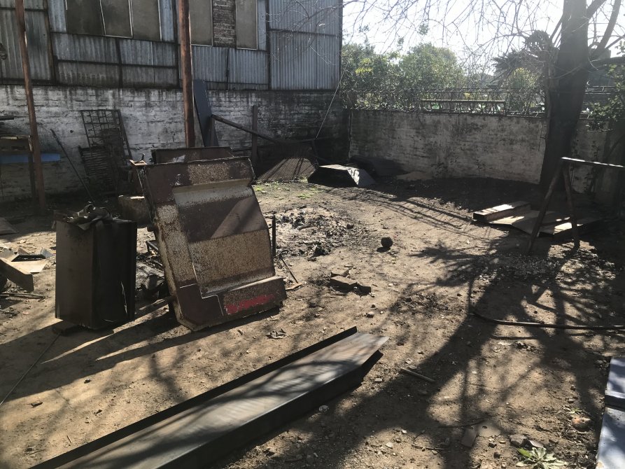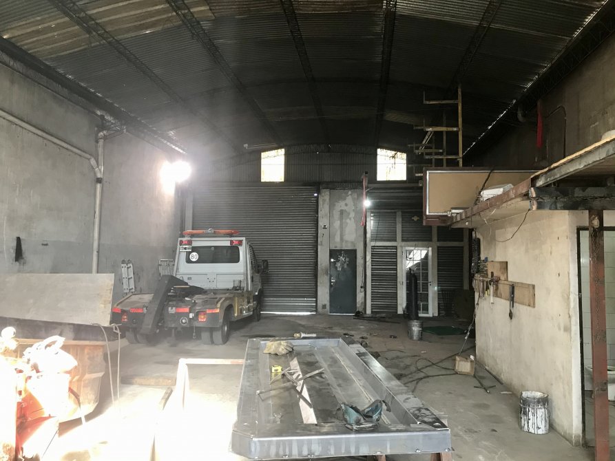 Galpón en venta de 180 m2 c/ techo parabólico de 5 mts de altura, contrapiso, entrepiso, dos baños, dos cortinas metálicas al frente y espacio libre al fondo.