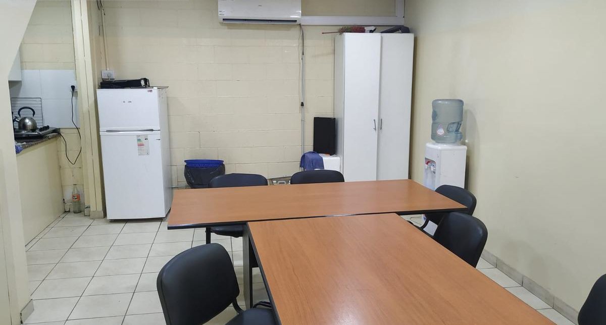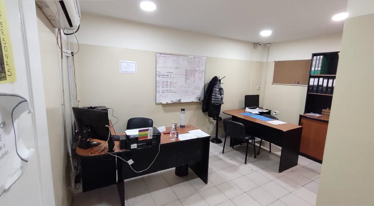 P.B: Hall de recepción, pasillo de circulación, cuatro oficinas, un box, amplio salón comedor c/ anafe, deposito, un baño y un vestuario c/ baño completo y duchas.