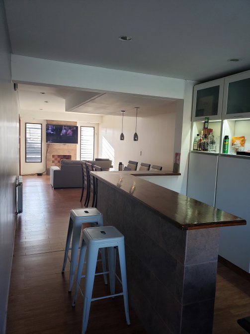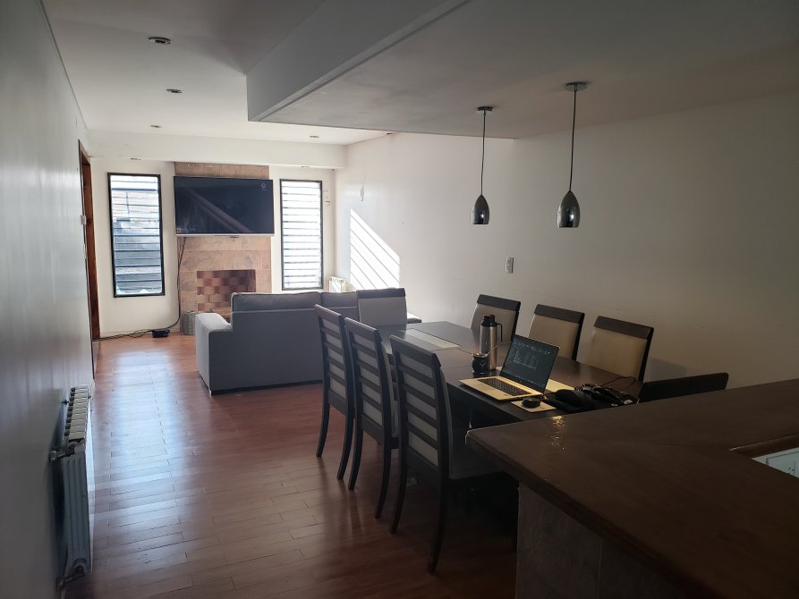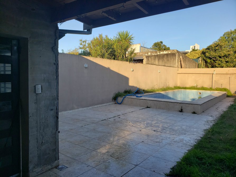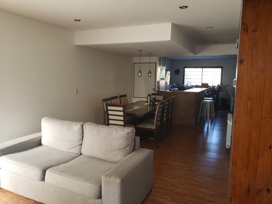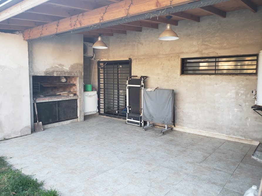 CASA EN VENTA Con Tres dormitorios (Uno en SUITE c/ VESTIDOR), Living, Comedor, Cocina Amueblada c/ Barra desayunadora, Comedor diario, Baño principal, Toillete, Galería c/ Parrilla, Baño Auxiliar. EXTERIOR: Patio, Entrada de Vehículo al frente, Parque y Pileta de material (3x9 mts) c/ Filtro y Solárium. CALEFACCIÓN X CALDERA.