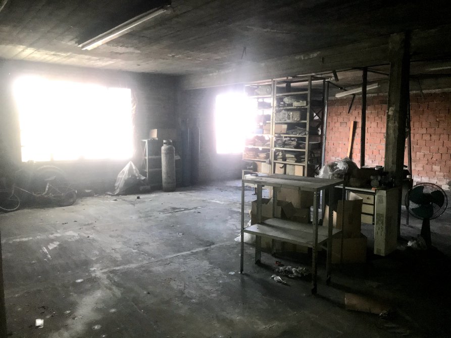 Galpón de 400 m2 c/ techo de losa de 4mts de altura, sector de oficinas (tres), sector de baños c/ vestuarios.