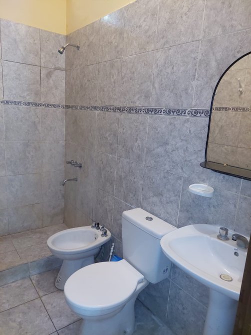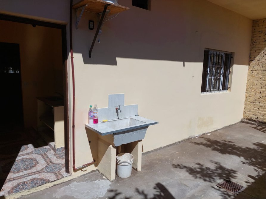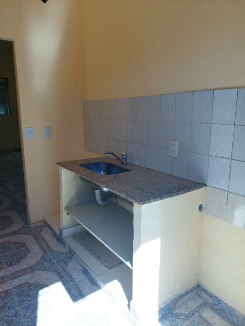 Casa en alquiler con dos dormitorios con pisos de cerámica, living, cocina chica c/ gas envasado, comedor, baño, y patio c/ lavadero.
