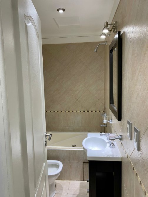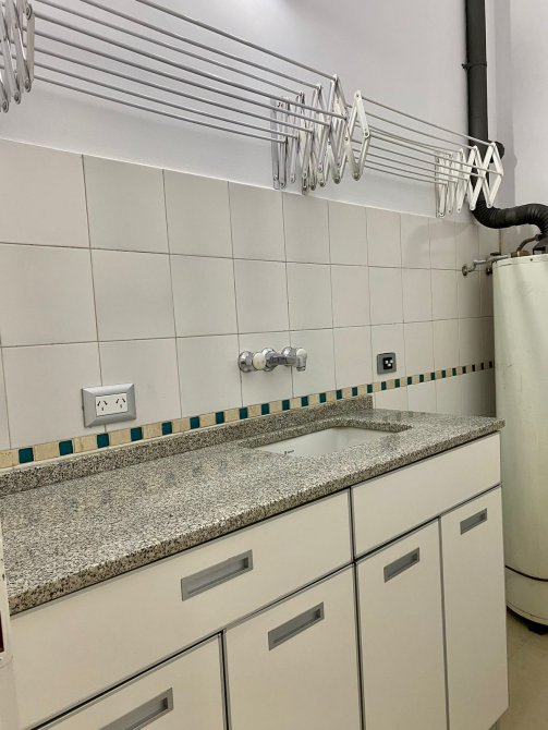 Amplio dormitorio al frente con placard empotrado con puertas corredizas con salida al balcón y espacio ideal escritorio para poder realizar home office o un espacio según necesidad, Baño completo con bañera hidromasaje con griferías fv Malena satinado y artefactos loza ferrum, Aire acondicionado frio-calor y Lavadero completo con muebles bajo mesada para planchado, tender, pileta , termotanque Rheem saiar de 150 litros , guardilla , Extratractor