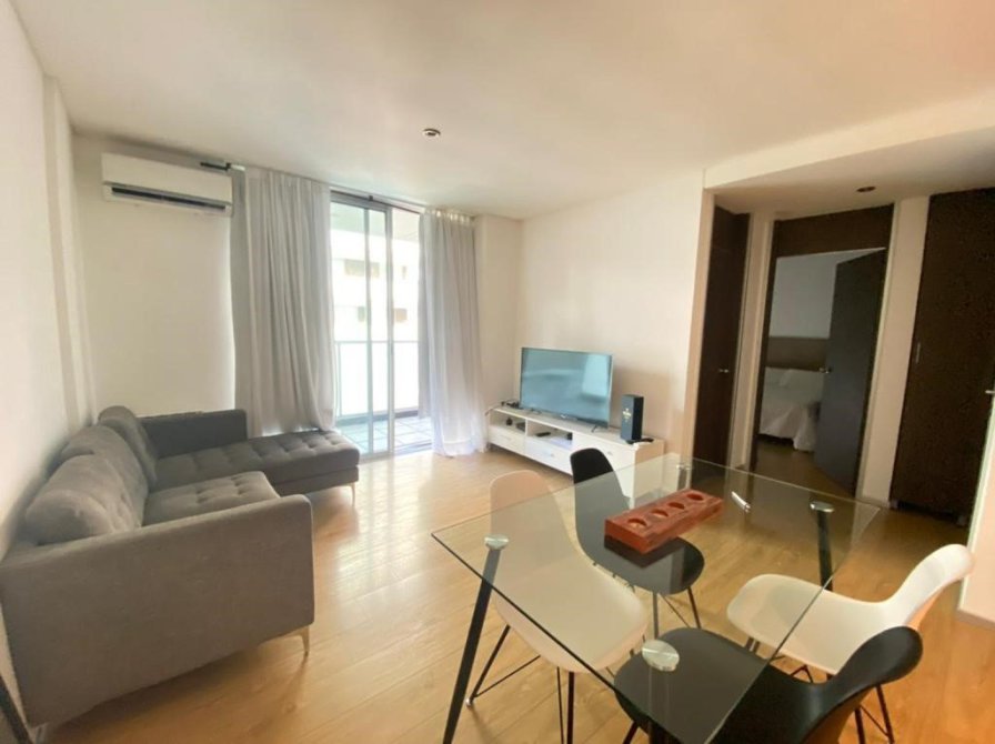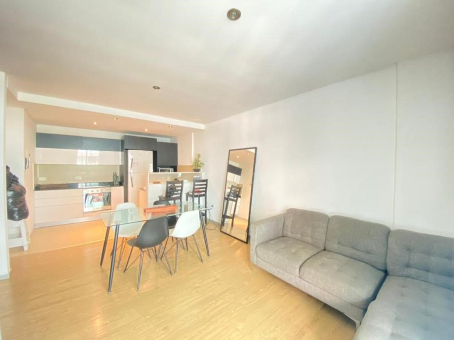 Dpto en venta con 72 m2 totales, consta de living comedor con equipo de aire frio/calor y ventanas con doble cortinado. Cocina integrada, muebles de bajo mesada y alacena completos. Dispone de 1 Dormitorio con equipo de aire frío/calor, placard empotrado y ventana con doble cortinado y 1 baño completo con bañera. Cuenta con pisos de madera flotante en living y dormitorio. Amplio balcón al interior del complejo.?