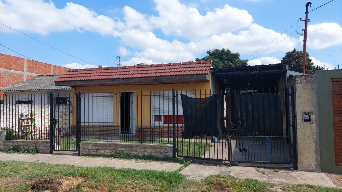 Casa Americana c/ dos dormitorios c/ pisos de ceramica, living-comedor diario amueblado, baño, techo de losa y lavdero cubierto . Pequeño patio, cochera y galpon. 85m2