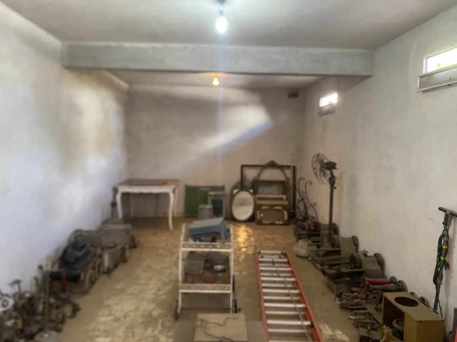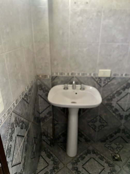 Galpon de 50m2, techo de losa, pisos de cerámica y portón corredizo.