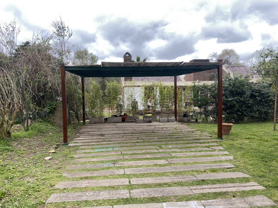 patio, parque c/ pileta de fibra de 3,6 x 8 mts c/ filtro y cochera p/ dos autos