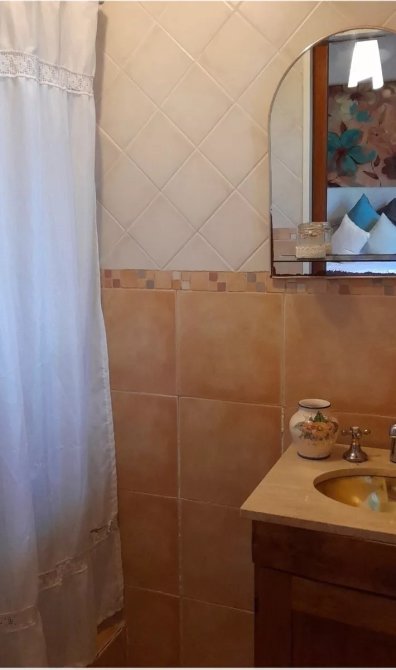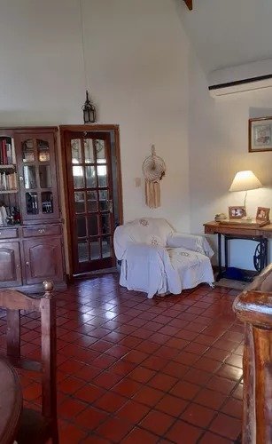 Casa c/ tres dormitorios en venta (1 en suite) y un entrepiso, living-comedor en desnivel c/ hogar a leña, cocina-comedor diario amueblado, baño principal y galeria.