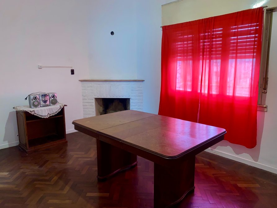Casa en venta con tres dormitorios con placard y pisos de parquet, living-comedor c/ hogar a leña, cocina-comedor diario amoblada, baño, patio amplio, garage p/ 2 autos, galpon