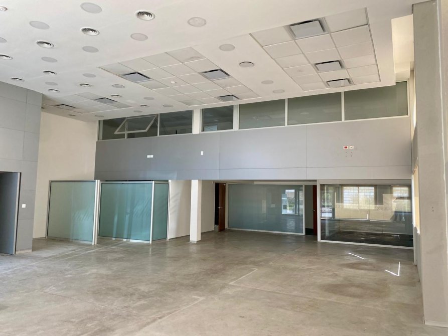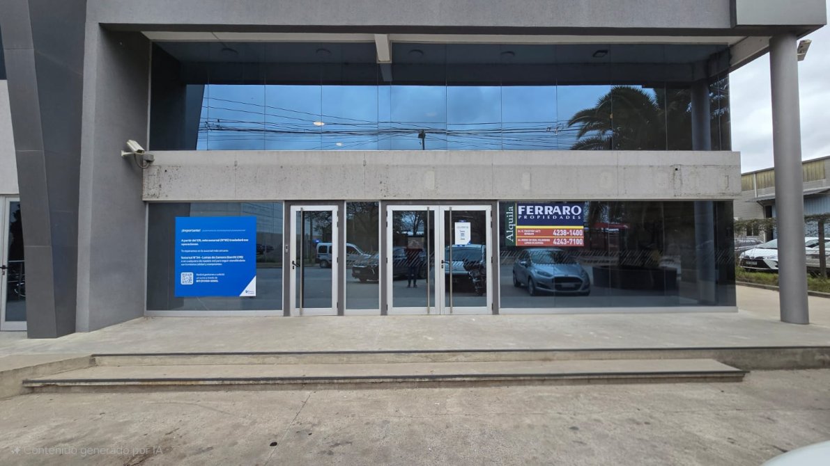 Local en alquiler con entrepiso, frente vidriado, pisos de porcelanato, baños, oficina y playa de estacionamiento con luz funcionando.