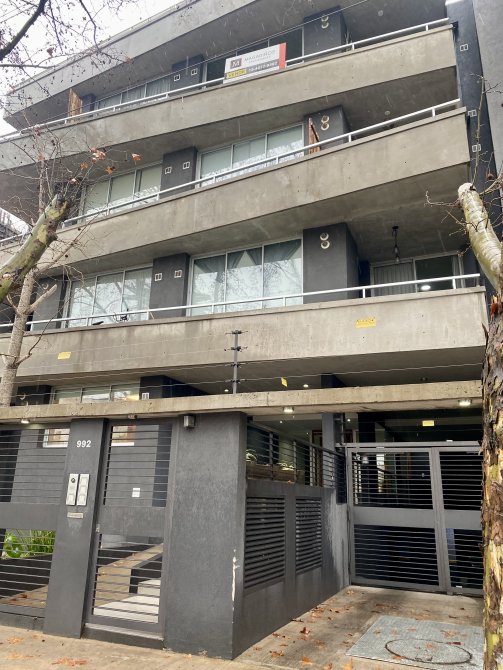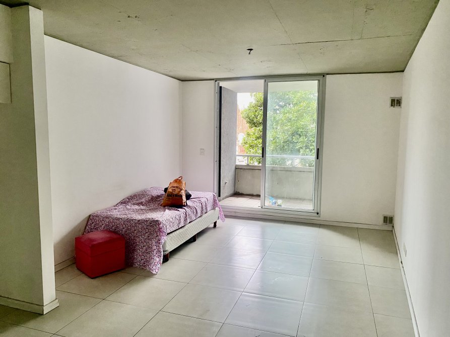 Dpto en primer piso tipo monoambiente amplio, muy luminoso con pisos de cerámica, baño con bañera, cocina amueblada y balcón con terraza.