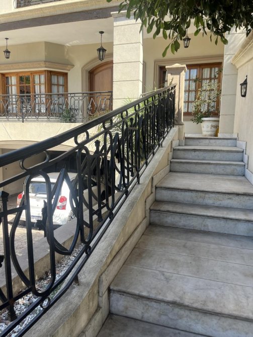 Planta Baja: Acceso Principal por escalera de marmol y doble puerta de madera, escritorio con pisos de pinotea y living con hogar a leña y cúpula traslúcida.