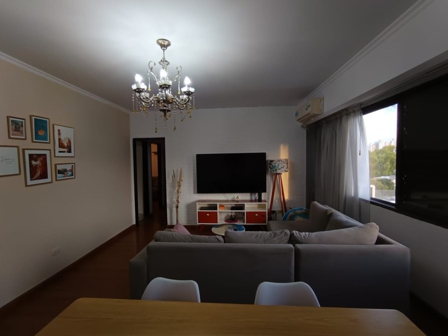 Departamento al frente en ALQUILER. El mismo cuenta con dos dormitorios con pisos de cerámica (uno con placard y aire acondicionado split Frio/Calor; el otro con placard y aire acondicionado Split Frio), cocina - comedor diario completo, living - comedor muy amplio con pisos de madera flotante y baño completo con bañera. El edificio cuenta con dos ascensores y un espacio común al aire libre en la planta baja.