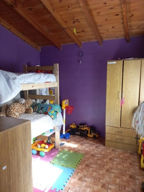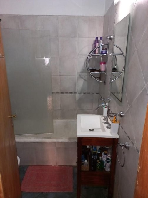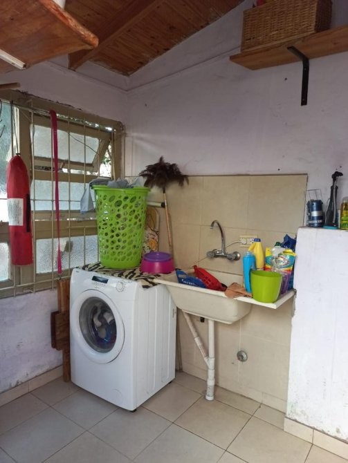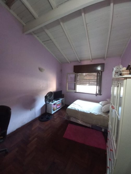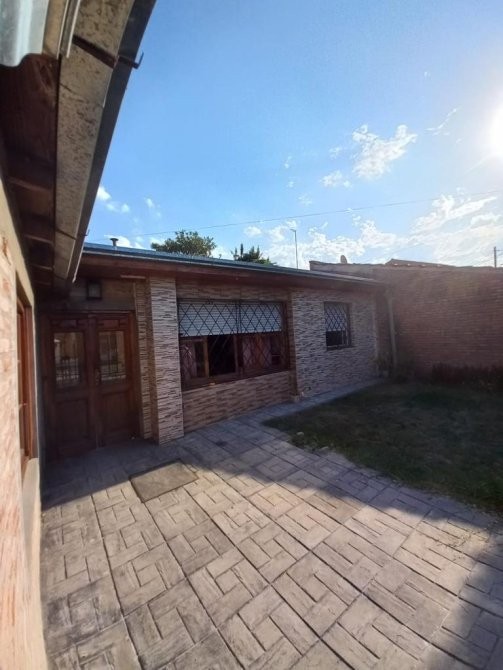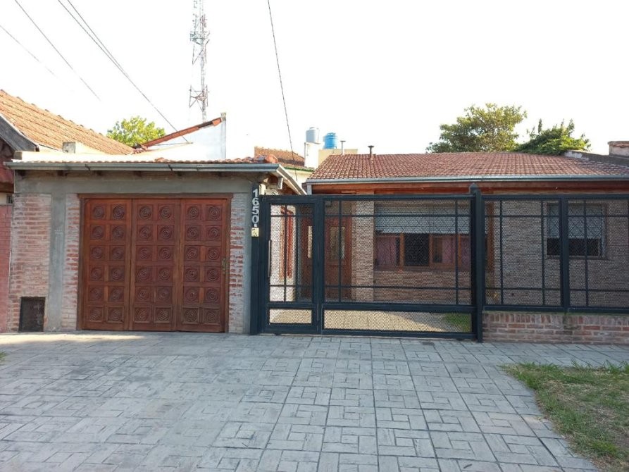Casa en alquiler con dos dormitorios (1 con pisos de parquet), baño con bañera, lavadero cubierto, patio, garage para un auto y parque.