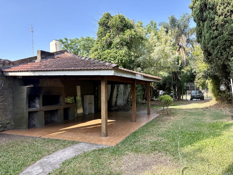 Chalet en alquiler con tres dormitorios (2 c/ placard), living, cocina-comedor diario amoblada, baño a nuevo, garage con lavadero, patio, quincho abierto c/ parrilla y excelente parque.